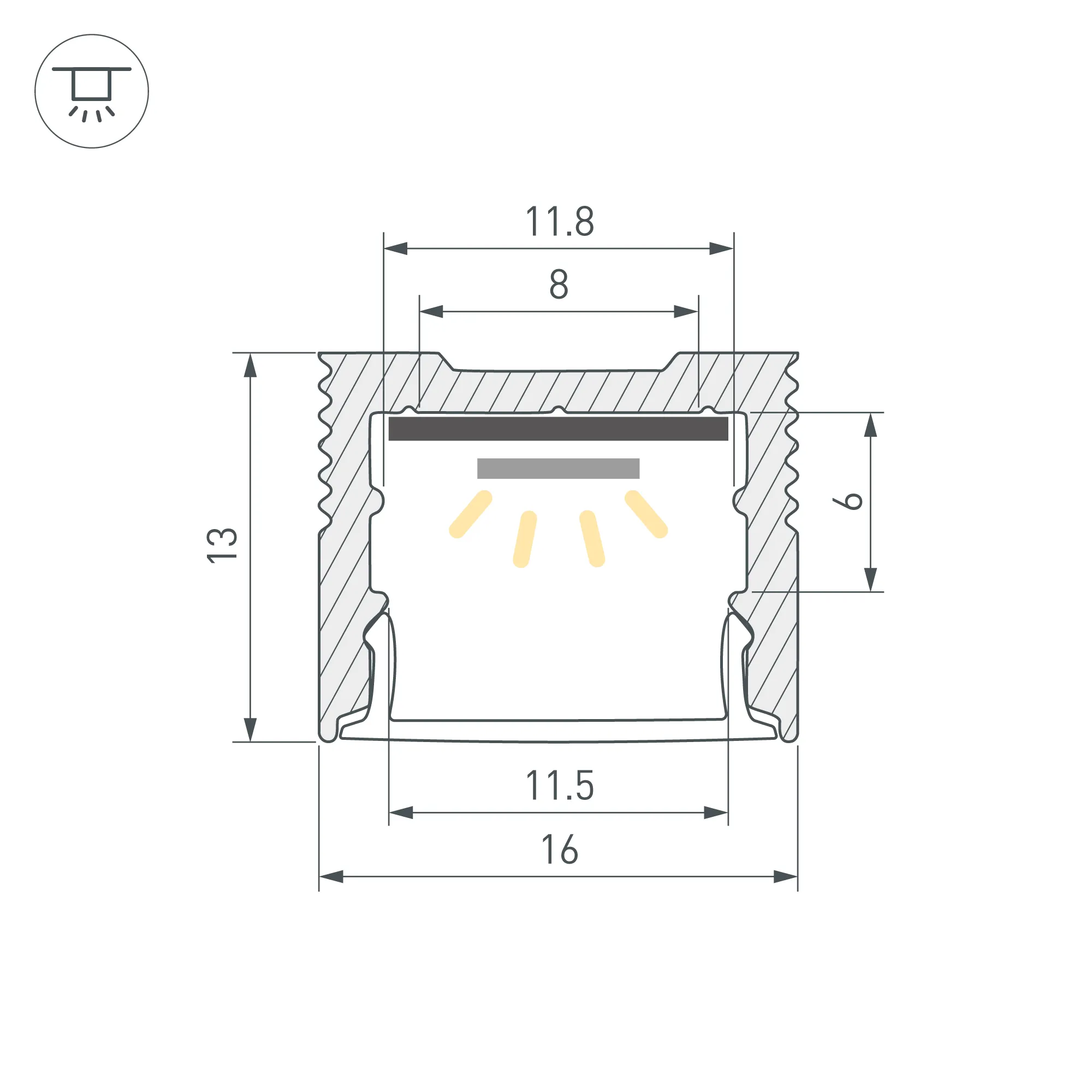 Алюминиевый профиль для светодиодных лент и линеек. Цвет - черный RAL9005 (порошковая окраска). Габаритные размеры (L×W×H): 2000x16x13 мм. Ширина площадки для ленты 11,8 мм. Экраны, заглушки и другие аксессуары приобретаются отдельно. Цена за 1 метр.