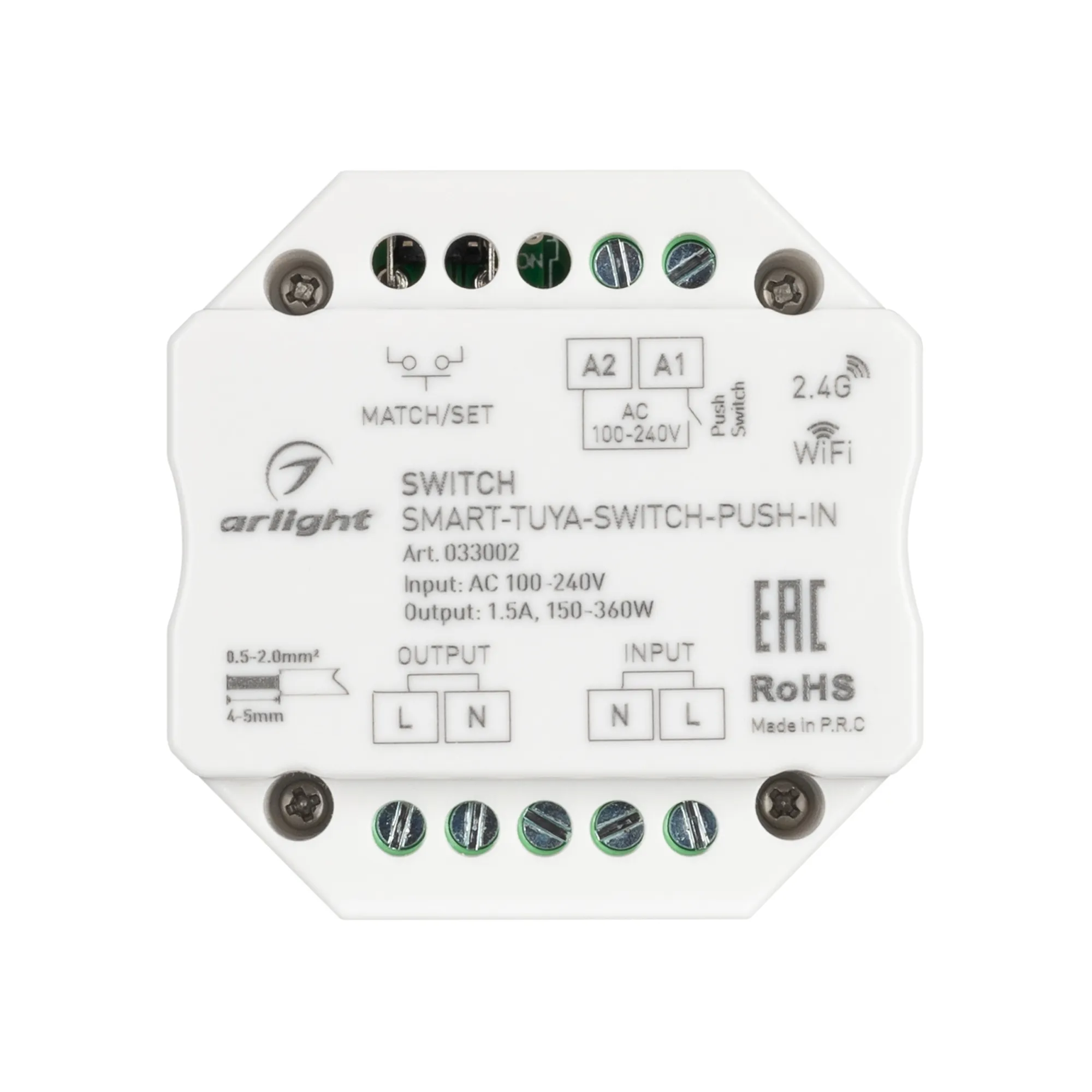 В магазине Arled Market Вы можете купить "Контроллер-выключатель SMART-TUYA-SWITCH-PUSH-IN (230V, 1.5A, WiFi, 2.4G) (Arlight, IP20 Пластик, 5 лет)"