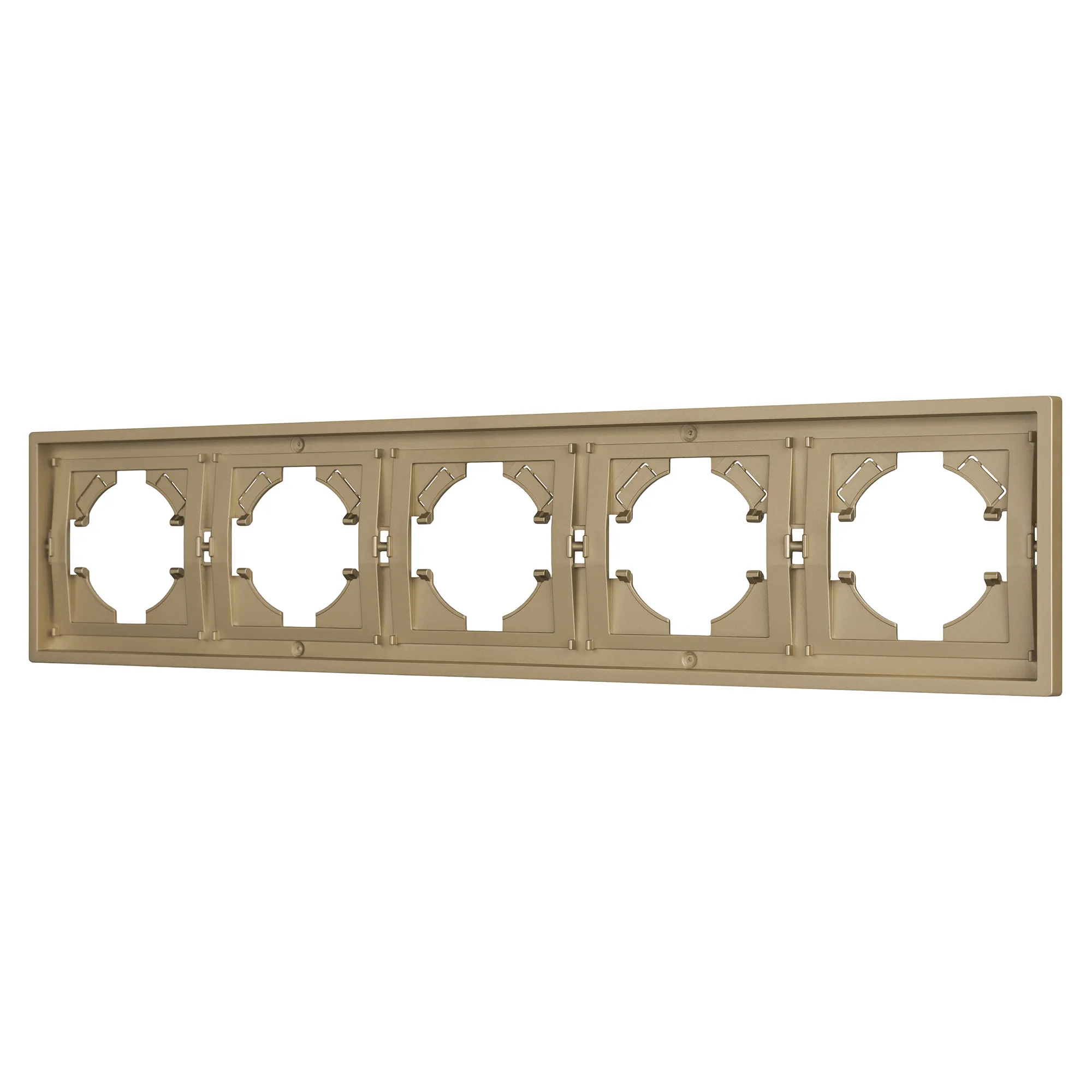 Рамка пластиковая на 5 постов, под встраиваемый механизм. Цвет - матовый песочный, с Soft-Touch покрытием. Уровень герметичности IP20. Ориентация монтажа горизонтальная.