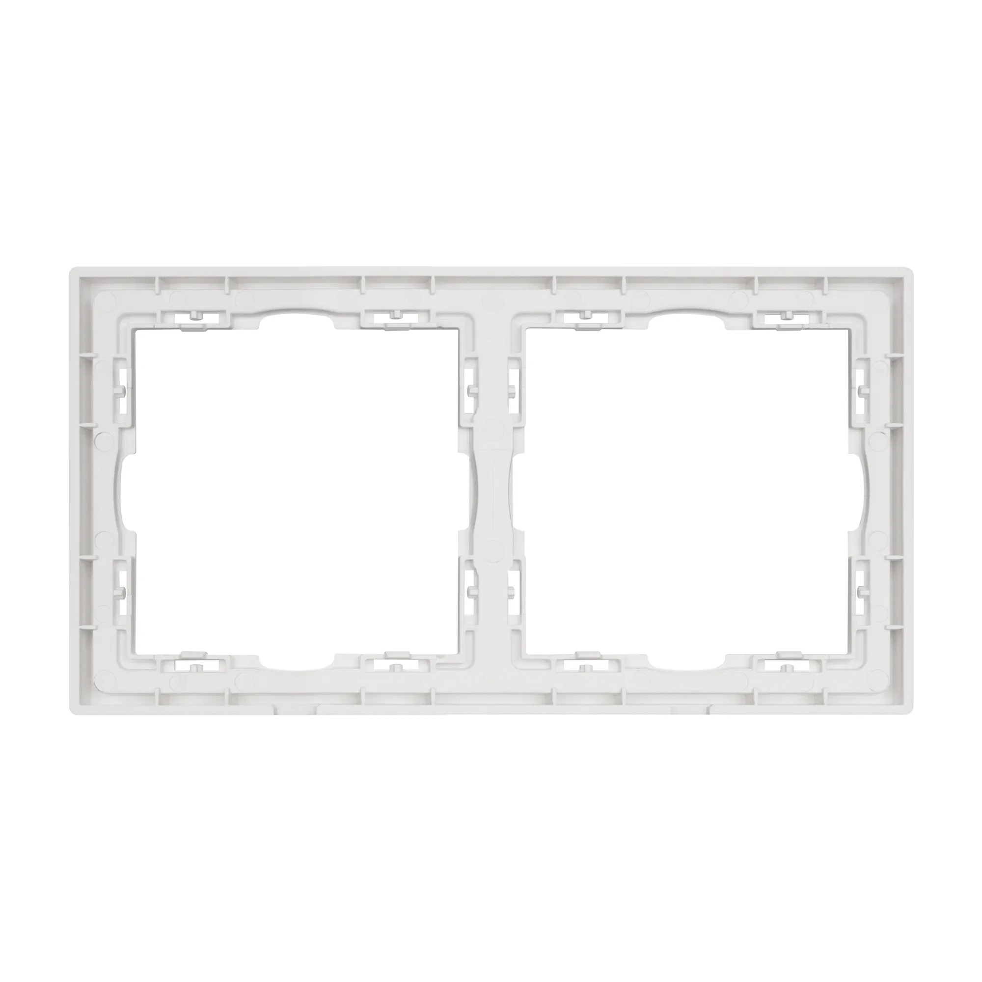 Рамка пластиковая на 2 поста, под встраиваемый механизм. Цвет - никель, с Soft-Touch поверхностью. Среднего уровня герметичности IP20. Ориентация монтажа горизонтальная.